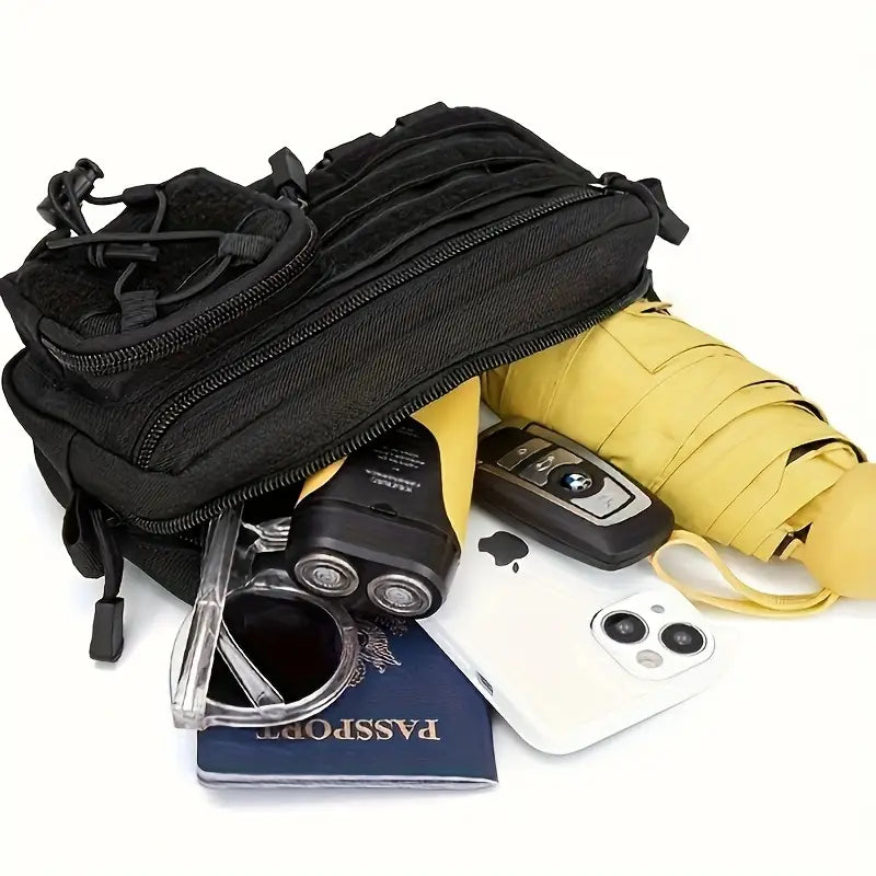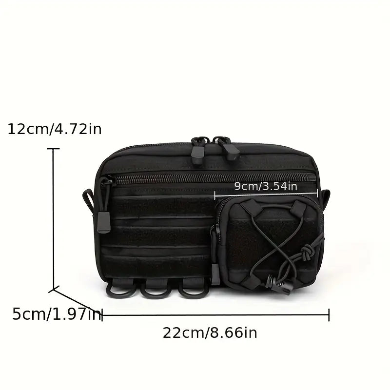 Удобна и практична тактическа MOLLE чанта, подходяща за първа помощ, инструменти, EDC аксесоари и outdoor оборудване. Изработена от издръжлив 900D Oxford Nylon, водоустойчива и устойчива на скъсване. Може да се закрепи към колан, тактически жилетки или раници чрез MOLLE система.