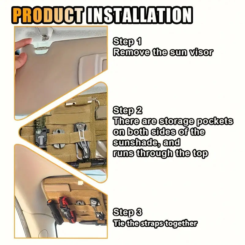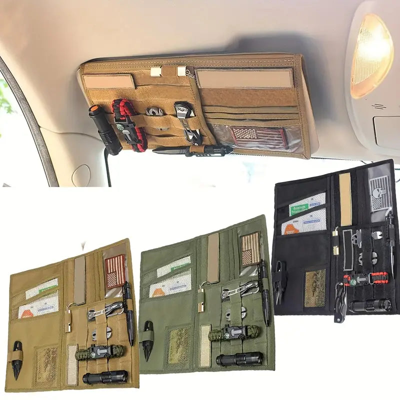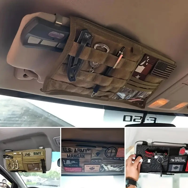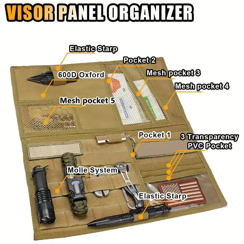 Поддържай автомобила си подреден и оборудван с този тактически органайзер за сенник. Изработен от 600D Oxford, той е издръжлив, практичен и с MOLLE система за закрепване на инструменти и аксесоари.