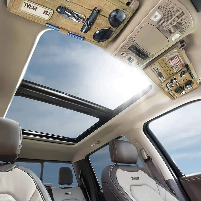 Двоен тактически органайзер за сенник за кола, джип, бус – MOLLE система, велкро, джобове за документи, очила и телефон + Подарък Нашивка, Персонализиране